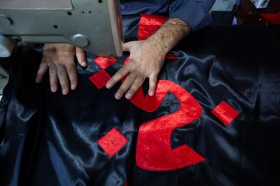 Il a conclu que "la bannière passe par de nombreuses étapes de conception et de couture, en commençant par choisir la qualité du tissu, qui est de bonne qualité, qui se caractérise par sa résistance aux conditions météorologiques et sa stabilité des couleurs, pour prendre ses propres mesures, puis commencer le travail de couture et de broderie, qui est manuel et une partie à l'aide de machines de coutures automatiques."