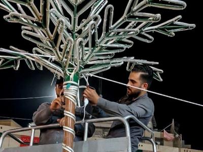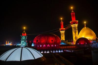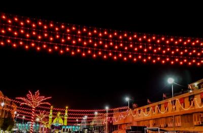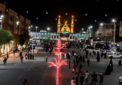 Er fügte hinzu: "Die elektrischen Arbeiten außerhalb des Heiligen Heiligtums umfassten die Beleuchtung der Straßen, die dahin führen, da die Beleuchtung der Lichtkugeln, die in der Al-Hawra Straße, der Bab Baghdad Straße, der Bab Al-Qibla Straße und der Al-Alqami Straße installiert waren, auf rot umgestellt wurden, sowie die Straßen, die das Heilige Heiligtum umgeben, angefangen vom Tor von Imam Al-Kadhem (Friede mit ihm) bis zum Ende des Qibla-Tors, und es wurden auch einige Banner und Kondolenz-Kunstwerke zu den vorhandenen hinzugefügt."