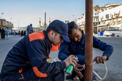 Er erklärte, dass "sich die Arbeiten nicht nur auf diesen Aspekt beschränkten, sondern es gab auch damit zusammenhängende Arbeiten wie den Anschluss und die Wartung von Pumpen und Sprühventilatoren in den Straßen rund um das Heilige Heiligtum sowie in der Al-Gomhoria-Straße in Zusammenarbeit mit der Abteilung für Projekte der Provinz Karbalaa und die Vorbereitung der Plätze, die Der Heilige Abbassitische Schrein für die rastenden Besucher vorsieht, sowie die Bereitstellung der für sie notwendigen Beleuchtung."