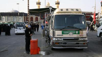 - القيام بحملات توزيع المياه والثلج على مواكب الخدمة الحسينيّة.