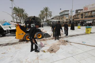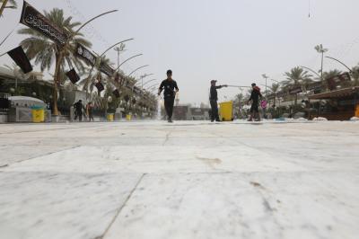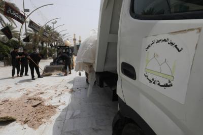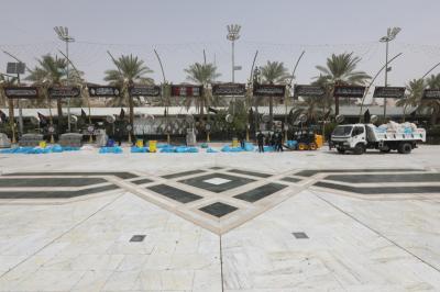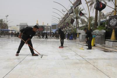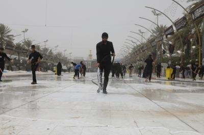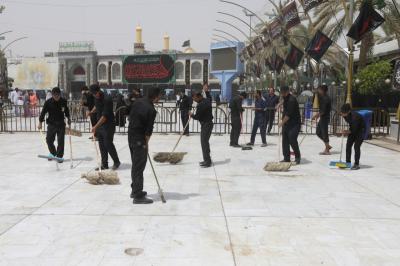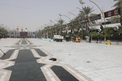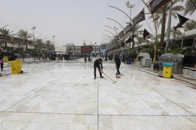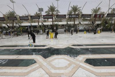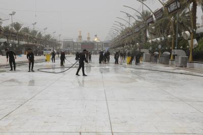 Watumishi wanaosimamia uwanja wa katikati ya haram mbili chini ya Atabatu Abbasiyya, wamemaliza kazi ya kusafisha uwanja huo, baada ya ziara ya Ashura.