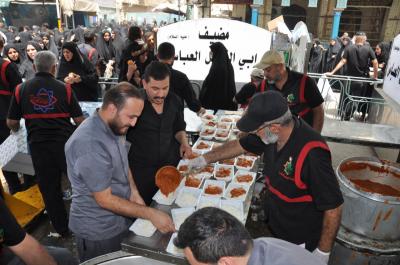 Les anges du département hôte du sanctuaire sacré d'al-Abbas (p) ont commencé à distribuer des repas et de l'eau froide aux visiteurs et aux participants au deuil de Bani Asad, le jour de l'enterrement des corps purs de l'imam Hussein, de sa famille et de ses compagnons (la paix soit sur eux tous).