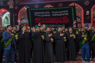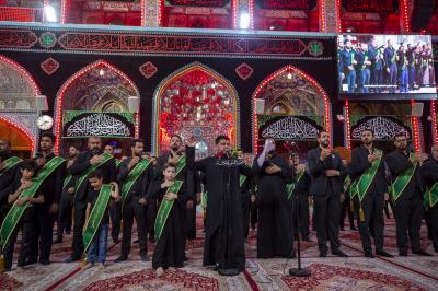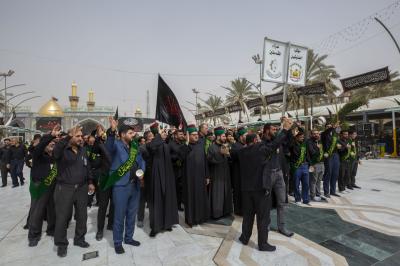Wamefanya matembezi hayo wakiwa wamebeba bendera nyeusi zilizo andikwa maneno ya kuomboleza, matembezi yameanzia ndani ya ukumbi wa haram ya Abulfadhil Abbasi (a.s), wakapita kwenye uwanja wa katikati ya haram mbili tukufu, wakaenda hadi kwenye haram ya Imamu Hussein, wakaingia kupitia mlango wa Shuhadaa huku wanaimba kaswida na kuomboleza msiba huo.