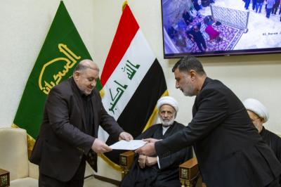 این هیئت طی مراسم تحویل پرچم از تولیت آستان قدس عسکریین برای حضور در نهمین کنفرانس بینالمللی اندیشه امام حسن (علیه السلام) که تحت نظارت دو آستان قدس حسینی و عباسی در بابل برگزار می شود دعوت به عمل آورد.