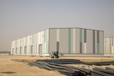 Il a ajouté que "la superficie de chaque atelier est de trois mille mètres carrés, les entrepôts sont de (2500 mètres carrés) par entrepôt, et la superficie totale du projet est de (63) dunams équivalent à (160) mille mètres carrés".