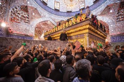 وأضاف العميدي " تبدأ القواطع الخشبية من باب قبلة الحرم الطاهر وتلتصق بالشُبّاك الشريف بواسطة مثلّثٍ معدنيّ يقسم الزائرين إلى نصفين،" مُضيفاً " قسمٌ يطوف حول الشبّاك ويتّجه صوب الباب الشرقي للحرم الطاهر الذي خُصّص للرجال فقط، وقسمٌ آخر بعد الطواف يتّجه صوب الباب الغربيّ للحرم كذلك."