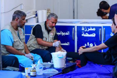 For his part, the official of the medical detachment in the complex, Mr. Ali al-Shammari, said that "there is coordination between the Al-Abbas's (p) holy shrine and the Diwaniya health department, and here we are (245) person, including (37) male and female doctors to provide our medical services to visitors to Karbala for the twelfth year in a row".
