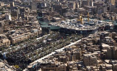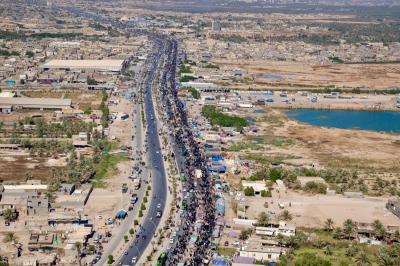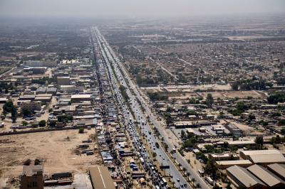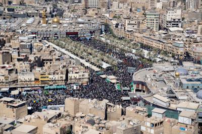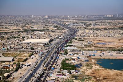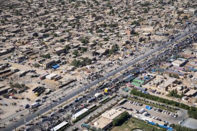 اظهرت صور جوية وثقتها عدسة المركز الخبري التابع لقسم اعلام العتبة العباسية المقدسة حركة الزائرين في داخل مدينة كربلاء المقدسة ومداخلها الرئيسية .