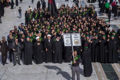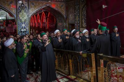 Maukibu imeanzia matembezi yake ndani ya haram ya Abulfadhil Abbasi (a.s), ikapita katika uwanja wa katikati ya haram mbili tukufu huku wanaimba kaswida za huzuni na kuomboleza msiba uliotokea katika nyumba wa Mtume Muhammad (s.a.w.w).