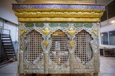 Die Abteilung begann am (13. Oktober 2020) mit der Verlegung der Meilensteine des heiligen Gitters, nachdem zuvor die Herstellung seiner Krone und des oberen Daches abgeschlossen und darauf montiert worden war, wie der Leiter der Abteilung, Herr Nadhem al-Ghurrabi, sagte: "Die ersten Schritte dieser Arbeit umfassten die Vorbereitung von Entwürfen für das Gitter, die von dem bestehenden Gitter mit wunderbaren künstlerischen Akzenten inspiriert sind. Die Schreiner der Fabrik haben auch die Holzstruktur für das Gitter angefertigt, die den Ausgangspunkt für die übrigen Metall- und Holzteile bildet, für die die besten Holzarten (birmanisches Holz) ausgewählt wurden, wobei eine spezielle Befestigungsmethode angewandt wurde, die auf die Gewichte abgestimmt ist, die daran befestigt werden sollen".