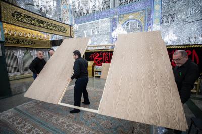 L'ingénieur Ali Salloum a déclaré : "Un mécanisme de travail a été mis au point et les matériaux nécessaires ont été préparés pour fabriquer des barrières pour la grille alternative en bois pour les hommes et une autre pour les femmes afin que les visiteurs puissent accomplir la cérémonie de Ziyarat jusqu'à l'achèvement de l'installation de la nouvelle grille".
