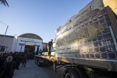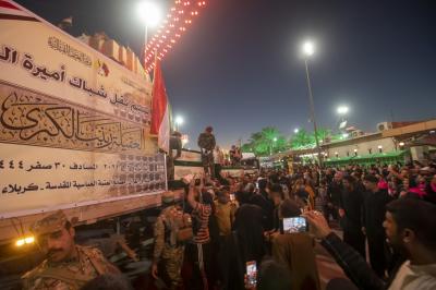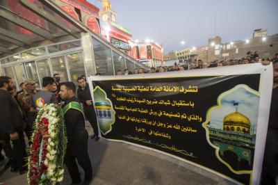 هنگام ورود ضریح مطهر به آستان قدس عباسی خادمان حضرت ابوالفضل عباس (علیه السلام) به استقبال آن آمدند و زائران با تجمع در اطراف آستان مقدس حضرت ابوالفضل العباس (علیه السلام) بی صبرانه منتظر ورود ضریح بودند.