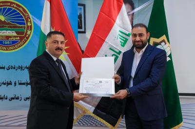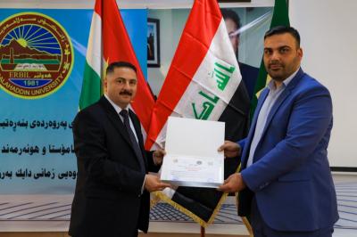 Il a ajouté: "Notre centre avait une participation à la recherche présentée par le professeur Qutaiba Aziz Hassan, directeur du département de décoration de celui-ci, et il s'agissait de la fabrication de couvertures de manuscrits et des époques les plus importantes de l'industrie du manuscrit, les types de décorations qui sont utilisé dans la fabrication de cette couverture et les types de moules décoratifs utilisés et les matières premières."