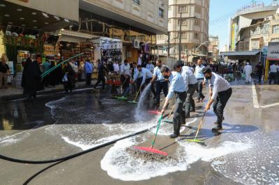 وأضاف " ويأتي هذا العمل بعد الانتهاء من أعمال رفع المخلفات بعد الزيارة المليونية، حيث باشرت ملاكاتنا بغسل الشوارع المؤدية إلى ساحة ما بين الحرمين الشريفين فضلاً عن أزقّة المدينة القديمة".