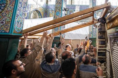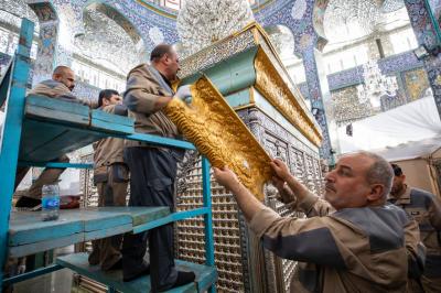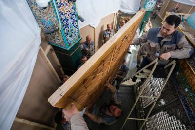 تواصل ملاكات قسم صناعة شبابيك الأضرحة والأبواب المطهّرة في العتبة العبّاسية المقدّسة، أعمالُ تفكيك أجزاء وقِطع الشبّاك القديم لمرقد السيّدة زينب(عليها السلام)، حيث وصلت الاعمال الى مراحل متقدّمة.