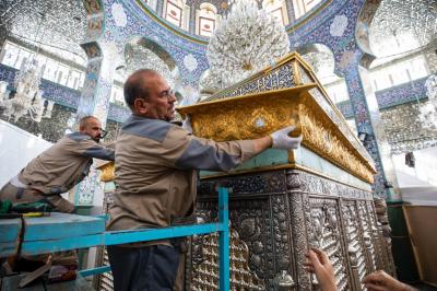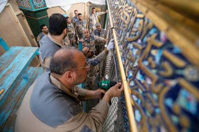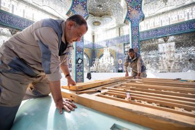 وتابع "نقوم بعدها بترقيم القطع بكوداتٍ رقميّة خاصّة حسب كلّ قطعة، بعدها تغلّف بشرائط بلاستيكية وقطعة قماشيّة وتوضع داخل صناديق صُنعت وفقاً لقياس كلّ جزءٍ وقطعة، ويوضع رقم وكود آخر على الصندوق ليتمّ نقلها بعد ذلك إلى مخازن العتبة الزينبيّة المطهّرة".