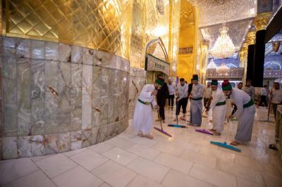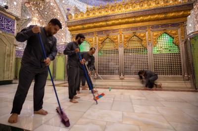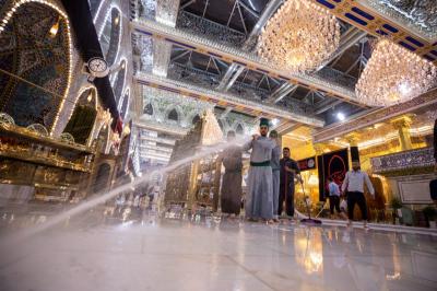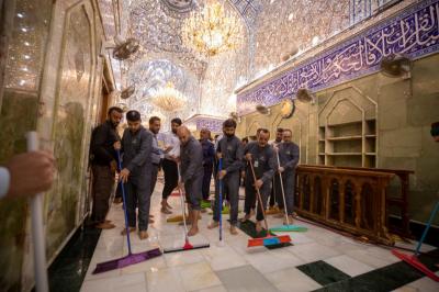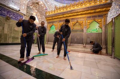 Nizar Ghani, der Beamte der Abteilung für die Pflege des Heiligtums, sagte seinerseits: "Aufgrund des Besucherandrangs während der großen Ziyarat-Periode ist die Desinfektion an einigen Stellen, die sie benötigen, lokal, daher kommt diese Kampagne nach dem Ende der Muharram- und Safar-Saison, um das Heiligtum vollständig zu reinigen."