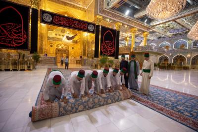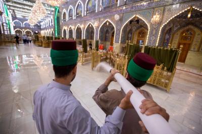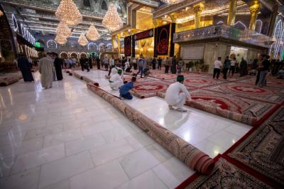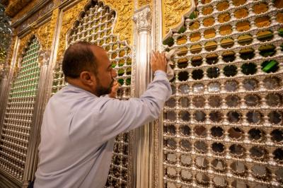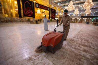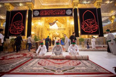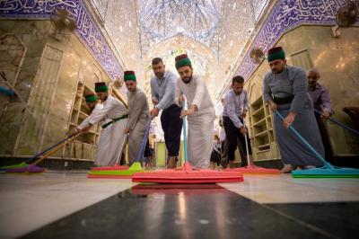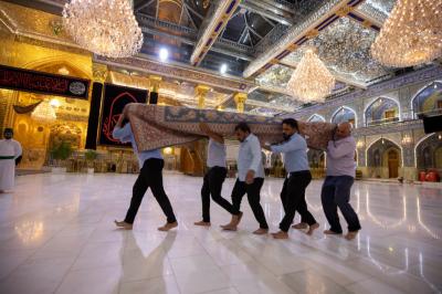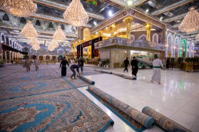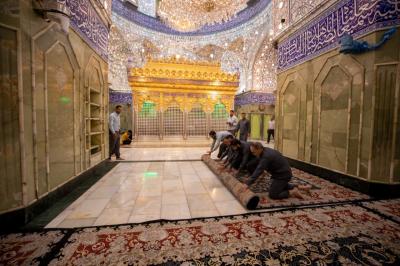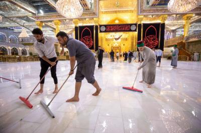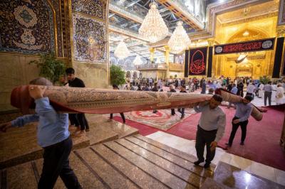 "Jedes Jahr nach dem Ende von Muharram und Safar werden die Zeichen der Traurigkeit und die schwarzen Banner sowie die Teppiche und Einrichtungsgegenstände im Inneren des Heiligtums und des Hofes entfernt. Danach werden der Hof, die Türen und das Heiligtum nacheinander gewaschen und die Einrichtungsgegenstände durch andere ersetzt, die der Herbstsaison entsprechen", sagte der stellvertretende Leiter der Hofpflegeabteilung Zain al-Abideen Adnan al-Quraishi.