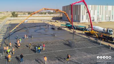 Er fügte hinzu: "Wir arbeiten jetzt in den fünf Werkstätten, die sich derzeit in der Gründungsphase befinden, und die Menge an Beton, die für die Gründung verwendet wird, beträgt etwa 2.500 Kubikmeter."