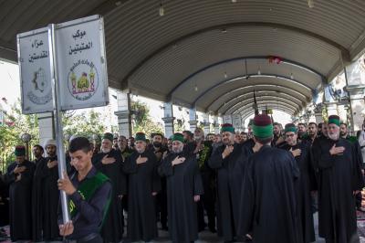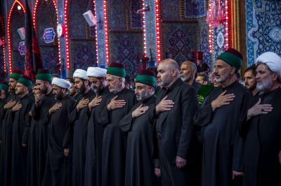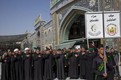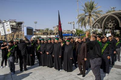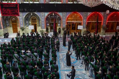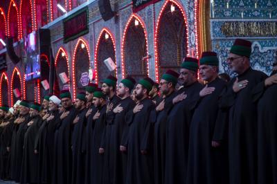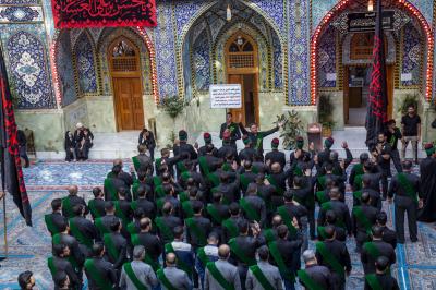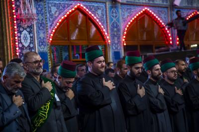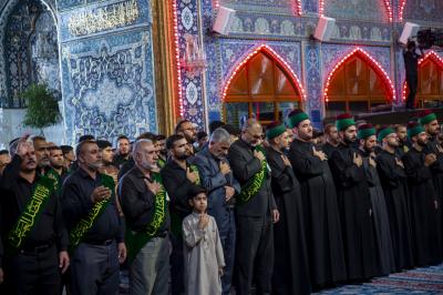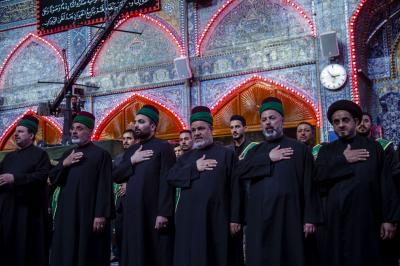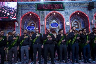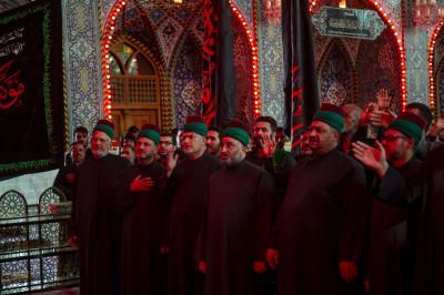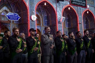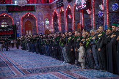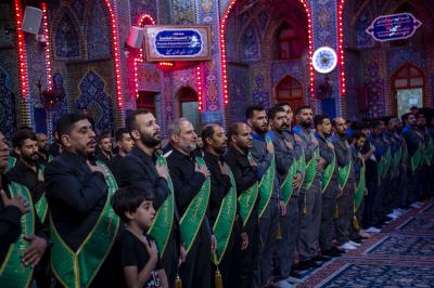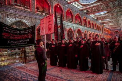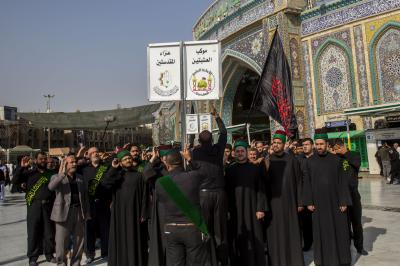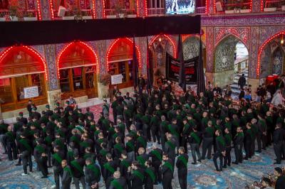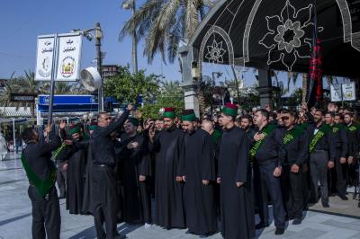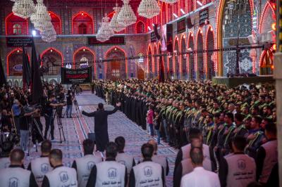 آج بروز بدھ (8 ربیع الاول 1444ھ) بعد از ظہر روضہ مبارک امام حسین علیہ السلام اور حضرت عباس علیہ السلام کے خدام نے حضرت امام حسن عسکری علیہ السلام کی شہادت کا اھل بیت اطہار علیھم السلام کو پُرسہ پیش کرنے اور اس المناک دن کے احیاء کے لئے ایک ماتمی جلوس نکالا کہ جو روضہ مبارک حضرت عباس علیہ السلام سے برآمد ہوا اور مابین الحرمین سے ہوتا ہوا حضرت امام حسین علیہ السلام کے روضہ مبارک میں پہنچا کہ جہاں دونوں مقدس حرموں کے خدام نے مل کر اپنے مظلوم امام کے مصائب پر ماتم کیا اس ماتمی جلوس کا اختتام روضہ مبارک امام حسین(ع) کے صحن میں ایک مجلس عزاء پہ ہوا جس میں مقامت مقدسہ کربلا کے خدام کے علاوہ زائرین اور عزاداران امام علیہ السلام کی بڑی تعداد نے شرکت کی۔