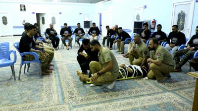 Le Département du développement et du développement durable a repris ses cours dans le domaine des premiers secours dans le cadre du programme (Le soin tactique de blessures de combat) pour un certain nombre de membres des départements du sanctuaire sacré d'al-Abbas (p).