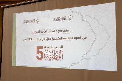 احتفى معهد القران الكريم النسوي في النجف الاشرف التابع للعتبة العباسية المقدسة، بالفائزات في المسابقة الوطنية الخامسة لحفظ القران الكريم وذلك بحضور المتولي الشرعي للعتبة المقدسة سماحة السيد احمد الصافي.