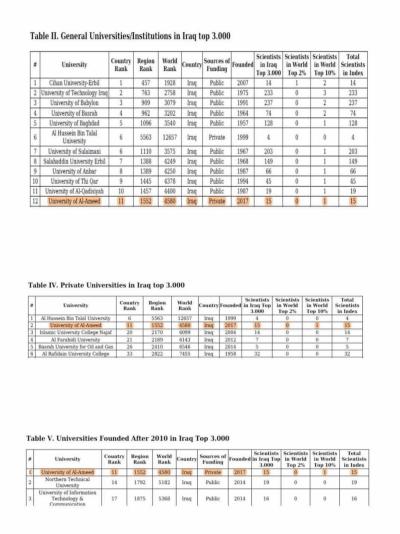 6- The president of the Al-Ameed University; Prof. Dr. Mo'ayyed Omran al-Ghazali ranked 938th out of 2805 Iraqi scientists at the level of public and private universities.