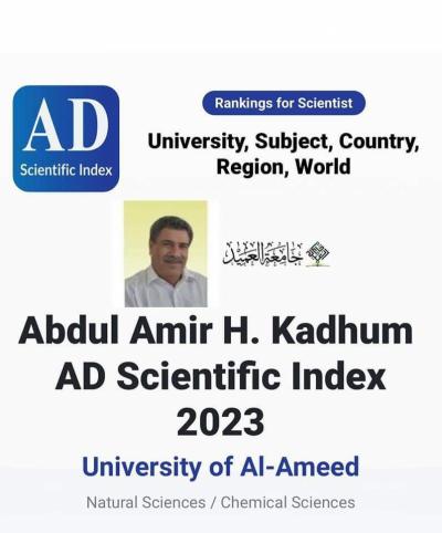 5- Prof. Dr. Abdul Amir Kadhem Hassan from Al-Ameed University obtained the second sequence out of (2805) Iraqi scientists at the level of public and private universities.