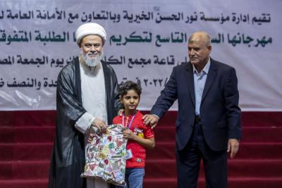 This was followed by a speech of the outstanding students delivered by student Mohammed Sadeq, which included thanking the religious authority and promising to be builders of the country, as well as thanking his mother, the great lady, who was a real support and the foundation that did everything possible to provide adequate support to all students, while wishing all the best to the supporters and sponsors.