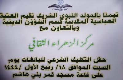 The official of the Guidance and Support Division in the Department said that "the coronation ceremony held at the Qamar Bani Hashim mosque (peace be upon him) was an invitation for parents to cling and adhere to the principles of Islamic awareness and culture more than ever, as they have a great responsibility to urge their daughters to adhere to chastity and the correct hijab, and this station should be the starting point for an important age stage in the girl's life in terms of Sharia duties".