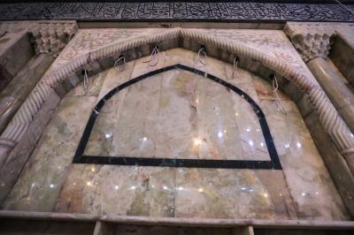 وتابع ان "أعمال تغليف الجدران بالمرمر تجري بحسب تصاميم وُضعت لهذا الغرض، وبنقوش وزخارف كانت جزءاً من الحائط شملت أقواساً ومكتبات جدارية".