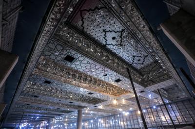 إن الأعمال الحالية وبحسب الصائغ "تجري بمسارات عديدة، وذلك لأجل الانتهاء منه بأسرع وقتٍ ممكن، ومن ضمن هذه الأعمال تغليف السقف بالزجاج المقطّع فنياً، وهي أعمال مقترنةٌ بالدقّة والحرفيّة تبعاً لتصاميم وقياساتٍ وأحجامٍ وأشكالٍ مختلفة".