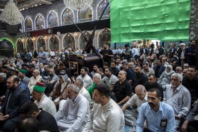 Les funérailles solennelles ont été suivies par un grand rassemblement de la population de Karbala et des propriétaires des processions husseiniennes et des serviteurs des deux sanctuaires sacrés de l'Imam al-Hussayn et de son frère Aba al-Fadl al-Abbas (que la paix soit avec eux).