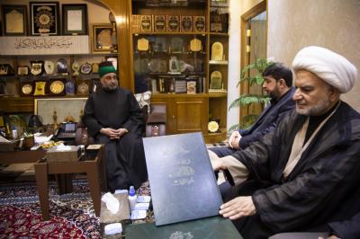 واطلع السيّد الأمين العام على نسخة المصحف الشريف بحضور رئيس المَجمع العلمي الدكتور مشتاق العلي وعدد من ملاكاته.