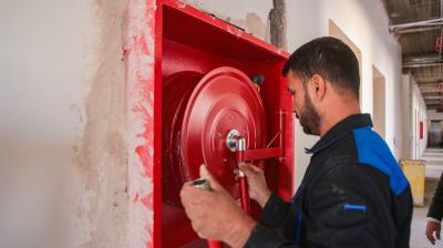 "Three floors have been allocated for housing, and each floor contains a reading room, 37 sleeping rooms and a communication room, equipped with an electricity system, two kitchens and a bathroom of 13 toilet units, in addition to two service rooms with washing machines of high specifications," he added.