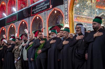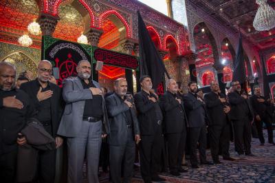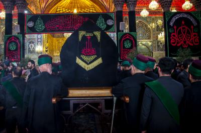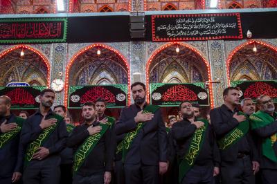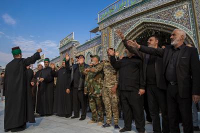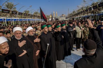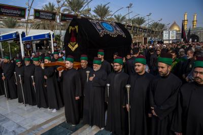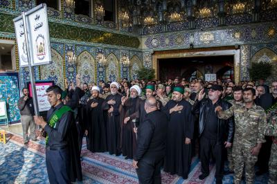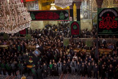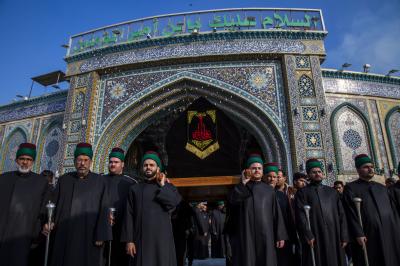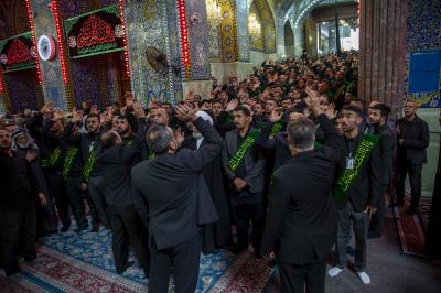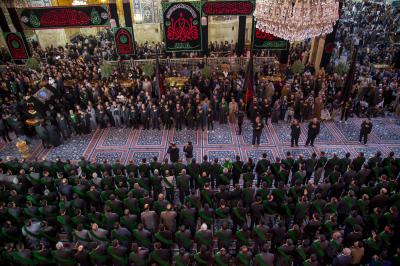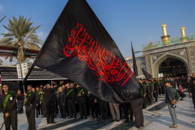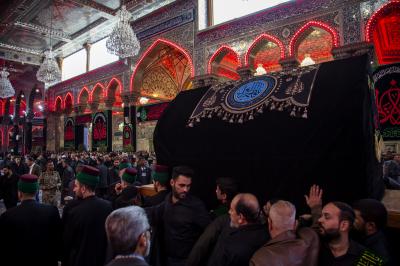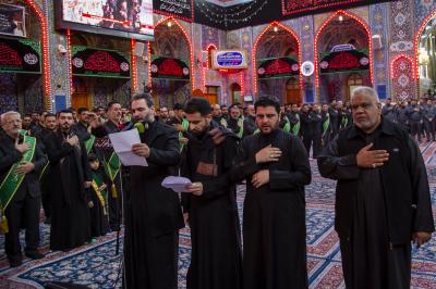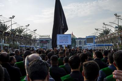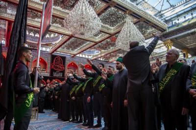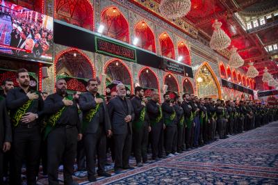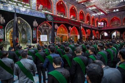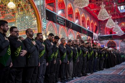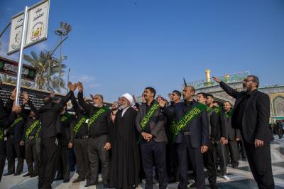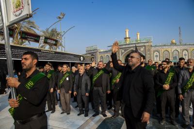 Die Prozession begann am heiligen Schrein von Meister Aba al-Fadl Al-Abbass (Friede mit ihm), und nachdem sie ihm ihr Beileid ausgesprochen hatten, gingen seine Diener zum Schrein des Meisters der Märtyrer (Allahs Gebete und Frieden seien auf ihm), wobei sie den Platz zwischen den beiden heiligen Schreinen passierten.