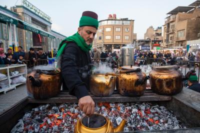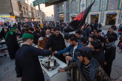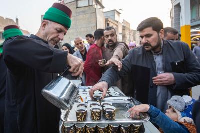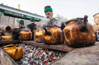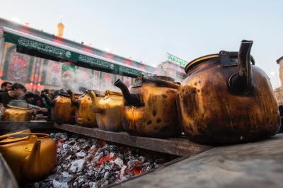 Comme à leur habitude, en mémoire du martyre de leur grand-mère, Al-Zahra (que la paix soit sur elle), les messieurs des serviteurs du sanctuaire saint Al Abbas (p) commencent à rendre service aux visiteurs d'Aba Al-Fadl Al-Abbas (que la paix soit sur elle). soit sur lui), à la saison des douleurs fatimides, en mettant en place une procession dans laquelle ils distribuent du thé préparé selon le rite Karbalai.