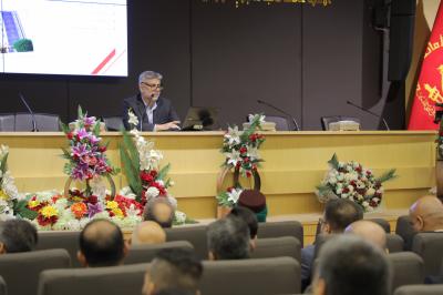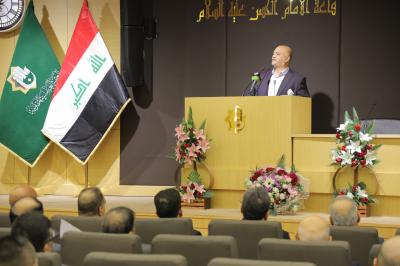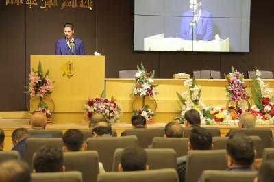 Es folgte eine Rede des Generaldirektors der Abteilung für regionale Entwicklung im irakischen Planungsministerium, Dr. Mohammed Mohsen al-Sayed, in der er den Nutzen der erfolgreichen Erfahrungen des Heiligen Abbassitischen Schreins bei den Investitionen in der Wüste hervorhob.