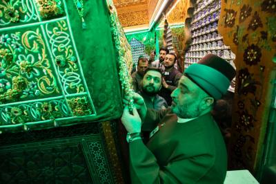 Hz.Ebulfazl Abbas’ın (Allah'ın selâmı üzerine olsun) mübarek türbesinin Zarîh-i Şerîfi’nin üzerini kaplamak amacıyla yapılan yeni Bürde’nin detaylarını daha önce sizlerle paylaşmıştık. Yapımı yıllar süren yeni bürde, düzenlenen görkemli merasimin ardından Zarîh-i Şerîf’in üzerine takıldı. Mukaddes Hz.Abbas (Allah’ın selâmı üzerine olsun) Türbesi Şerî Mütevellîsi Seyyid Ahmed Safî, Şii Vakfı Konseyi (Divanı) Başkanı Dr. Haydar eş-Şimmerî, Mukaddes Türbe Genel Sekreteri, Yönetim Kurulu Üyeleri ve Bölüm Başkanları’nın yanı sıra Kerbelâ Valisi’nin de hazır bulunduğu tören; muhterem ziyaretçilerin de ilgisine sahne oldu.