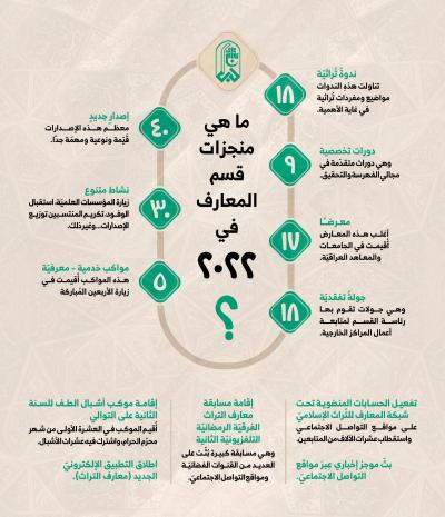 روضہ مبارک حضرت عباس علیہ السلام کے شعبہ معارف اسلامی و انسانی نے سال 2022 میں کئی اہم کامیابیاں حاصل کیں۔ یہ متنوع کامیابیاں شعبہ سے منسلک مراکز اور ڈویژنوں کے ذریعے حاصل کی گئی ہیں۔