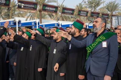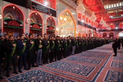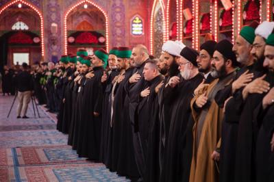 Anma töreni Hz.Ebulfazl Abbas’ın (Allah'ın selâmı üzerine olsun) hizmetkârlarının mübarek türbesinde toplanıp matem alayı kurmasıyla başladı. Facianın hüznünü ifade eden şiirler okuyarak mübarek türbede merasime başlayan Hz.Ebulfazl Abbas’ın (Allah'ın selâmı üzerine olsun) hizmetkârları; önce Beynel-Haremeyn-i Şerîfeyn Meydanı’na ve oradan da Şehitlerin Efendisi’nin (Allah'ın selâmı üzerine olsun) mübarek türbesine doğru geçti.