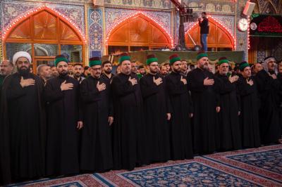 Mübarek türbesinde Şehitlerin Efendisi’nin (Allah’ın selâmı üzerine olsun) hizmetkârları tarafından karşılanan Hz.Ebulfazl Abbas’ın (Allah’ın selâmı üzerine olsun) hizmetkârları ardından bir araya gelerek matem meclisi düzenledi. Hz.İmam Huseyn’in (Allah’ın selâmı üzerine olsun) mübarek türbesinin esas avlusunda düzenlenen iki türbe hizmetkârları matem meclisinde okunan kasideler, mersiyeler ve dökülen gözyaşları eşliğinde Allah Resûlü’nün (Allah-u Teâlâ O’na ve Pâk Ehlibeyti’ne salât eylesin) ciğerpâresi ve iki Cihan Seyyidesi Hz.Fatıma Zehra'nın (Allah’ın selâmı üzerine olsun) yaşadığı mazlumiyet ve musibetler anıldı.