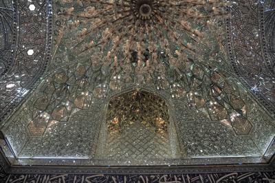 Der Leiter des Spiegelreferats in der Abteilung, Hassan Sa'eed, sagte: "Zuerst haben wir die beschädigten Spiegel entfernt und die Wände repariert, und dann haben wir daran gearbeitet, neue Spiegelinschriften auf einer Fläche von schätzungsweise eintausend Quadratmetern, einschließlich der Heiligen Kuppel, anzubringen."