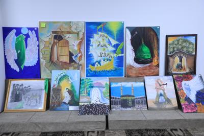 شهد معرض الأعمال الفنية المُقام على هامش مهرجان روح النبوّة العالمي النسوي بدورته الخامسة، مشاركة ما يقرب من (300) عملٍ فنّي.