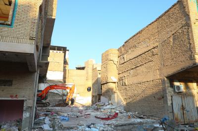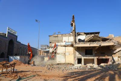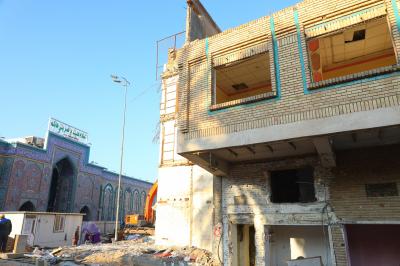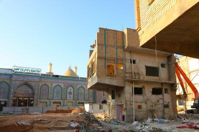 Les travaux de la troisième phase comprennent la démolition des bâtiments appartenant au projet de la cour et du sous-sol d'Umm al-Baneen (la paix soit avec elle), qui est situé sur le côté nord du sanctuaire d'Aba al-Fadl al-Abbas (la paix soit avec lui).