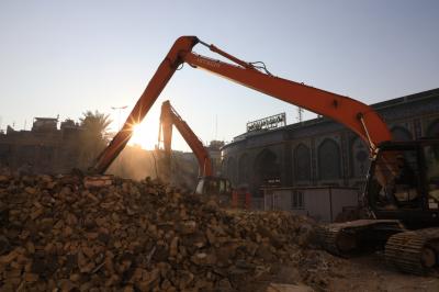 Le comité d'évacuation et de démolition des biens immobiliers du lieu saint d'Al-Abbas (P) poursuit les travaux de démolition des bâtiments situés dans le projet de cour d'Umm al-Baneen (que la paix soit avec elle).
