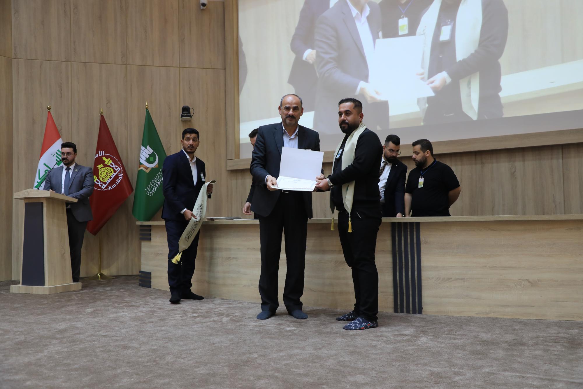 Die Zeremonie begann mit dem Rezitieren von Versen aus dem Heiligen Koran durch den Rezitator Haider Mohsen Al-Bazuni, und es wurden die irakische Nationalhymne und die Hymne des Heiligen Abbassitischen Schreins(die Melodie der Stolzes) gespielt, woraufhin ein Abschnitt zur Ehrung des pädagogischen Personals und der Erziehungsberater der Al-Ameed-Bildungsgruppe (für Jungen) folgte.