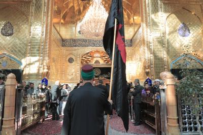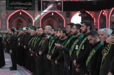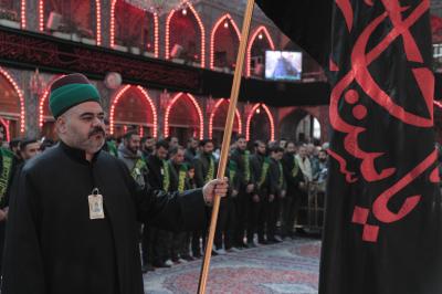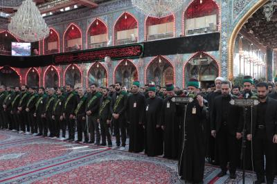 Hz.Ebulfazl Abbas’ın (Allah'ın selâmı üzerine olsun) hizmetkârları merasim için mübarek türbede saflar oluşturup Zarîh-i Şerîf’in karşısına geçti. Hz.İmam Musa Kâzım’ın (Allah'ın selâmı üzerine olsun) şahadet hatırası yıldönümünün yaklaşması nedeniyle özel olarak dekorize edilen ve dört bir yanına matem yazıları asılı mübarek türbede dizilen hizmetkârlar önce Hz.Ebulfazl Abbas’ın (Allah'ın selâmı üzerine olsun) ziyaret duasını ve sonra da Mukaddes Türbe’nin marşı “Lahn-ul İbâ/İzzet Ezgisi”ni okudu.