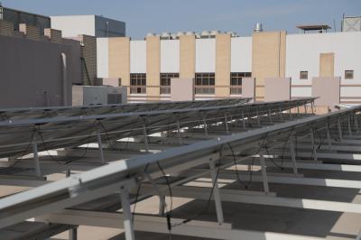 Telekomünikasyon Şubesi Sorumlusu Hamza söz konusu proje çalışması kapsamında güneş panellerinin verimliliğini artırmak ve bataryalara binen yükü azaltmak ve kompleks zeminini korumak için binaların tavanlarına özel bir kaplama yapıldığını paylaştı. Hamza yapılan yedi katlı beyaz renkli özel zemin kaplama sayesinde 15 ila 25 yıla kadar varan bir süre boyunca bakıma ihtiyaç duyulmayacağını söyledi.
