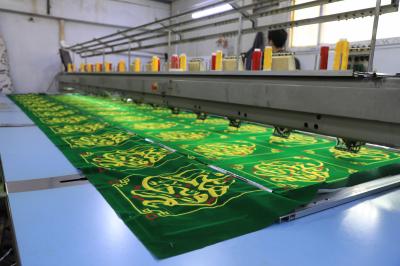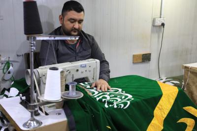 Er fügte hinzu, dass "die Arbeit des Nähens von Bannern von den Händen einer Gruppe von Mitarbeitern der Abteilung mit manuellen und elektronischen Näh- und Stickmaschinen ausgeführt wurde".